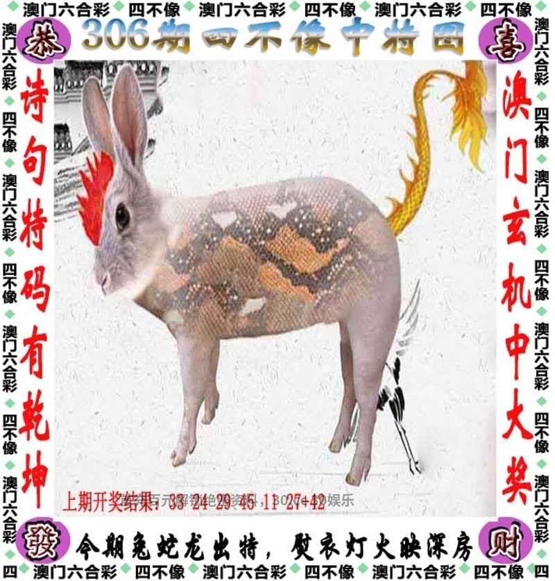 | 303期九肖 | 兔蛇猴马龙虎狗牛鸡 | 開:兔15 |